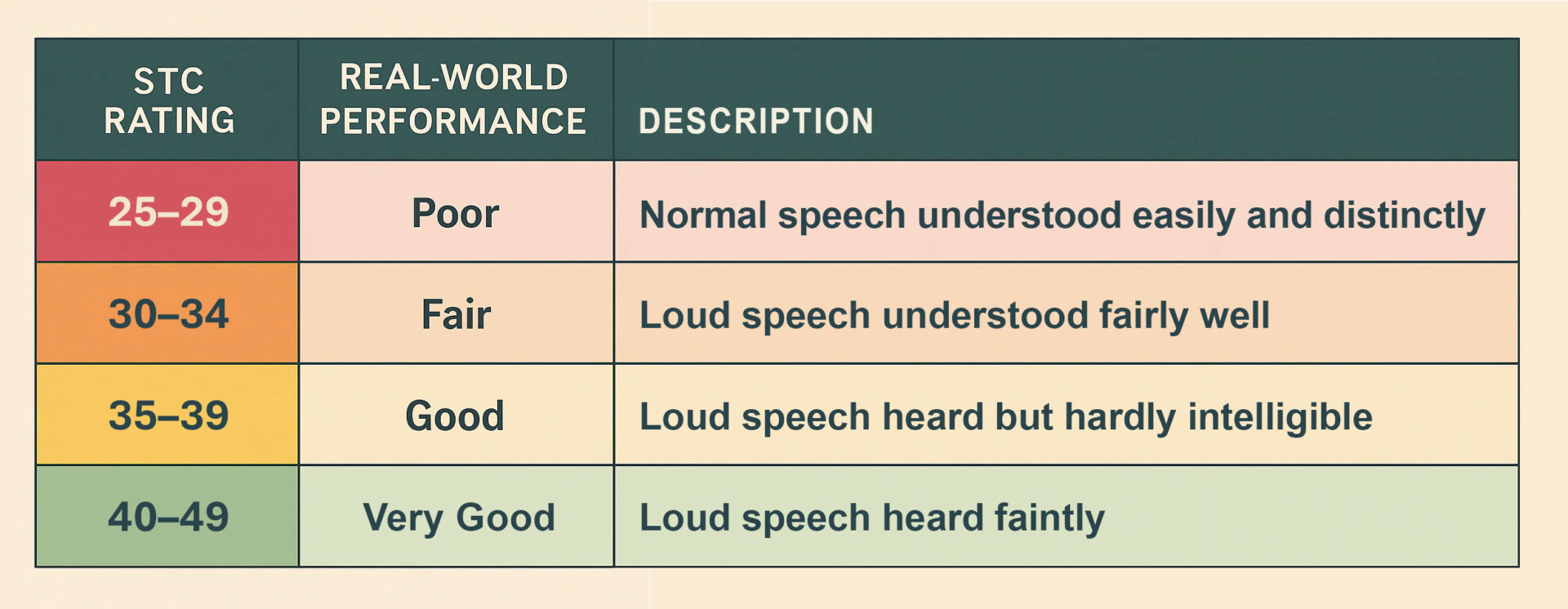 Proper perimeter sealing is critical: a mere 1/8″ clearance can drop a door’s effective rating from STC 52 down to STC 21!